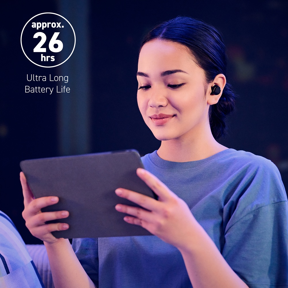 Навушники B120W забезпечують до 6,5 годин відтворення музики на одному заряді та додаткові 19,5 годин завдяки компактному кейсу для зберігання та зарядки. Це дозволяє насолоджуватися музикою та спілкуватися протягом усього дня без перебоїв.
