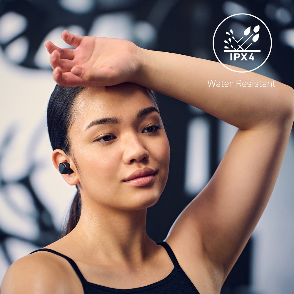 Створені за стандартом водостійкості IPX4, навушники B120W ідеально підходять для інтенсивних тренувань у спортзалі або використання на відкритому повітрі під час дощу.
