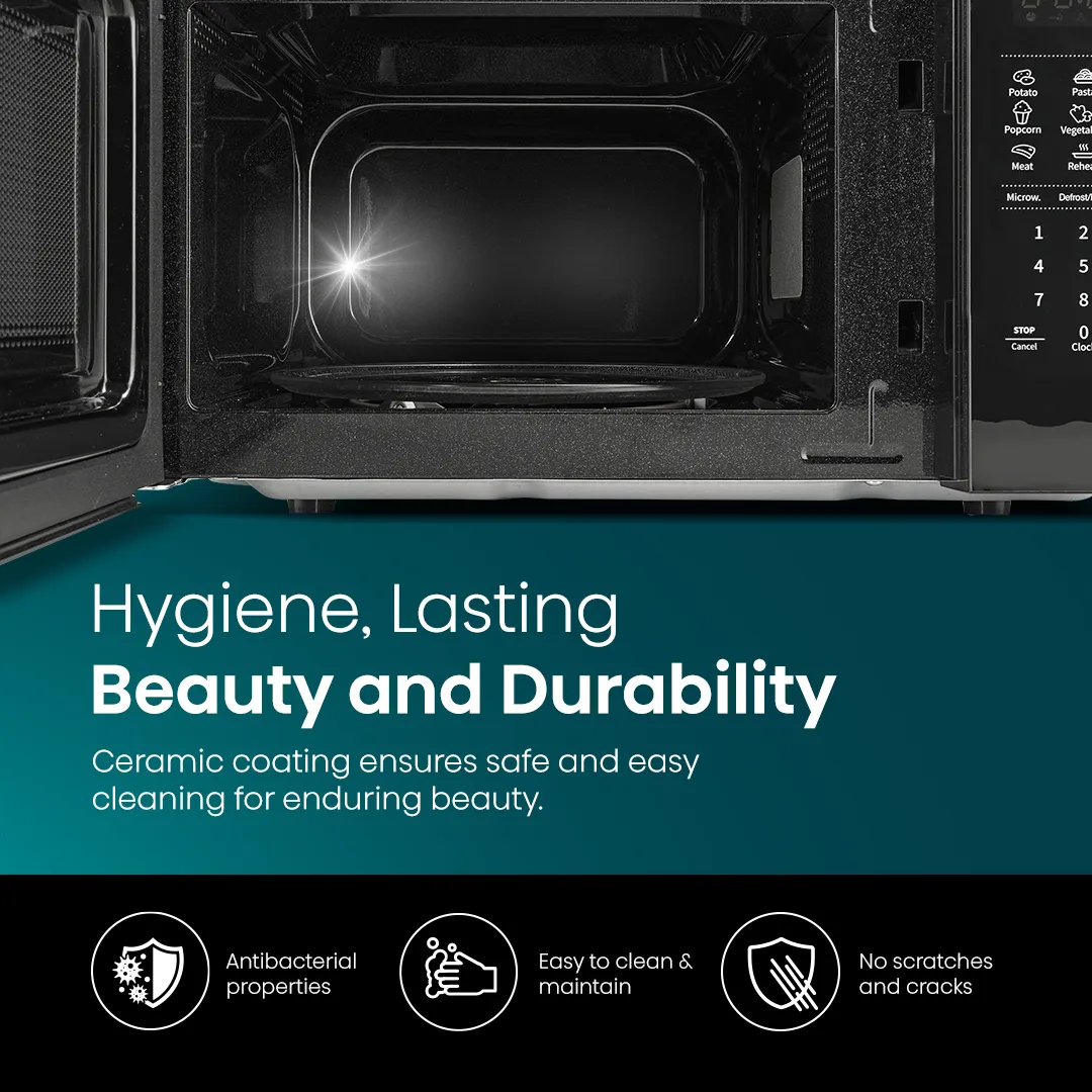 Якщо крім вас мікрохвильовою піччю користуються малі діти або літні люди, ви обов’язково оціните простоту використання, безпеку та легкість очищення. Просто протріть прилад і насолоджуйтеся приготуванням їжі.