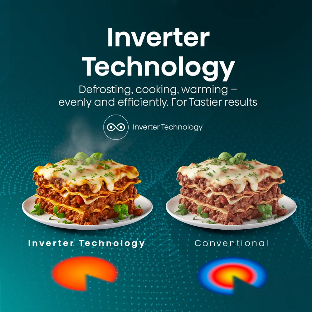 Сучасна інверторна технологія мікрохвиль Hisense змінить спосіб приготування їжі. Спробуйте рівномірно приготовані, ароматні страви, заощадивши час, гроші та енергію. Час приготування скорочується, а страви смакують ще краще. Оновіть свою кухню інверторною технологією Hisense та отримайте ідеальне поєднання енергоефективності, точності роботи та смаку.
