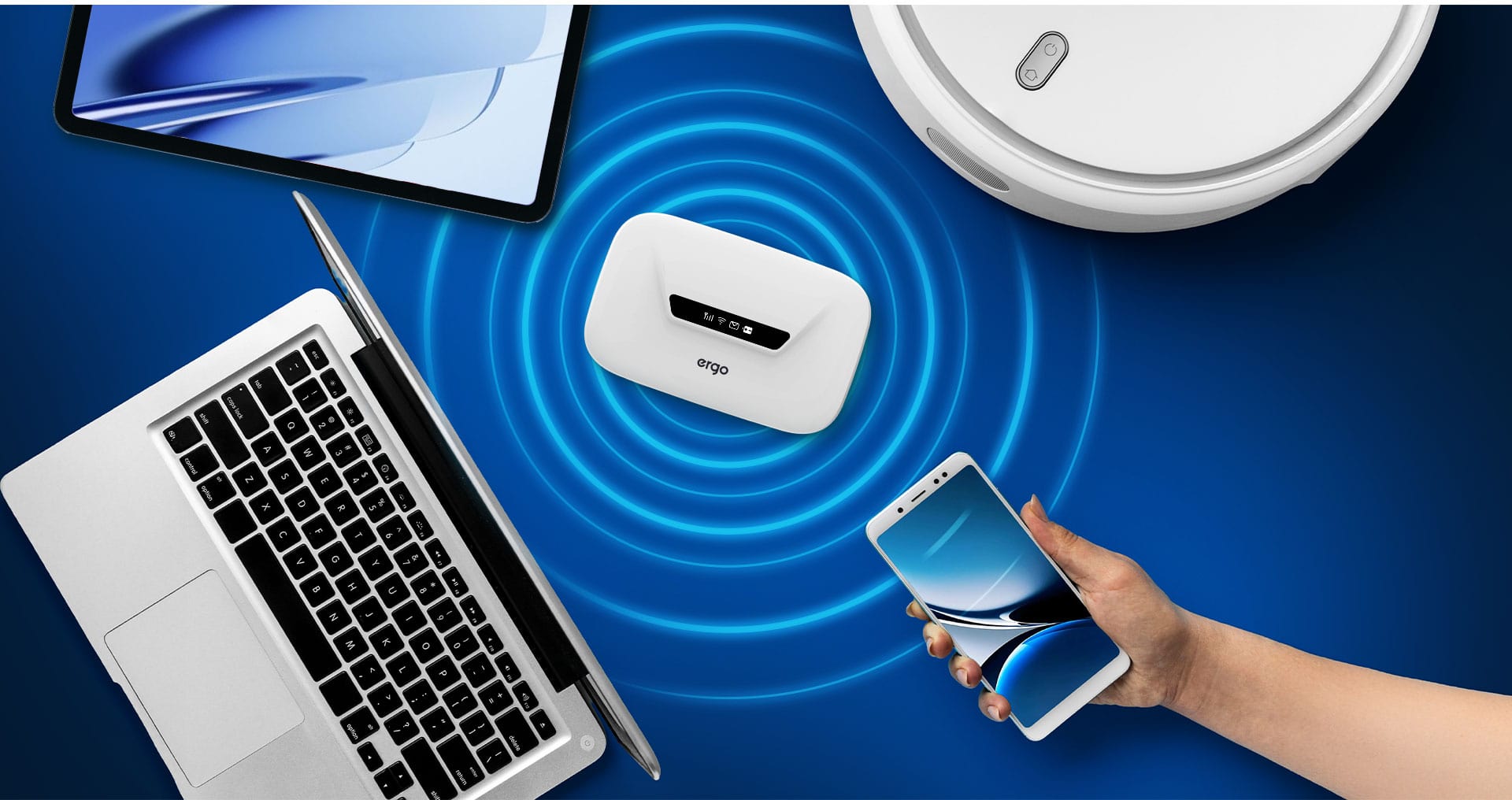 Модель ERGO M126 поєднує у собі 3G/4G-модем, що має підтримку наявних стандартів LTE, і Wi-Fi-роутер з підтримкою сучасного стандарту WiFi6. Для з’єднання з інтернетом пристрій підтримує картки nanoSIM будь-якого оператора послуг зв’язку, а під'єднання користувачів відбувається через мережу Wi-Fi на частоті 2.4 ГГц і зі швидкістю до 287 Мбіт/сек з можливістю під’єднання до 10 пристроїв одночасно.