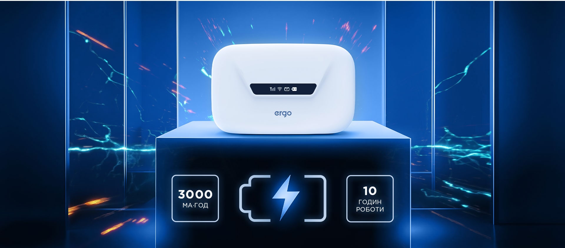 Модель ERGO M126 оснащується вбудованим акумулятором збільшеної ємності 3000 мА*год, і може працювати в автономному режимі до 10 годин. Також можлива робота в режимі живлення через USB-кабель, наприклад, від павербанка або іншого джерела живлення. Це дозволяє організовувати Wi-Fi-мережу з тривалим доступом до інтернету одразу для декількох користувачів у найбільш віддалених від цивілізації куточках, де є 3G/4G-покриття.
