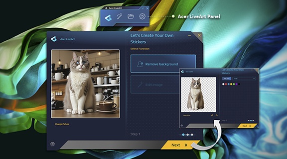 Миттєво видаляйте фон із зображень за допомогою Acer LiveArt™ 2.0. Редагуйте та створюйте стікери, щоб наклеїти їх будь-де, а коли ви робите знімок екрана або відкриваєте зображення, на екрані з'являється інтуїтивно зрозуміле меню, де наведено всю необхідну інформацію.