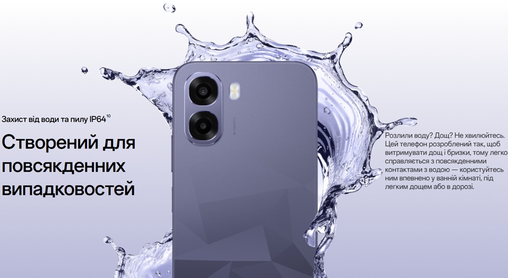 - OPPO A6k відповідає стандарту IP64, що забезпечує повний захист від проникнення пилу (включно з дрібним пилом) і стійкість до водяних бризок з усіх напрямків (наприклад, легкий дощ або бризки) у лабораторних умовах. Через старіння пристрою й індивідуальні звички користувача фактичний досвід може відрізнятися. Пошкодження від рідини або пилу не покривається гарантією.