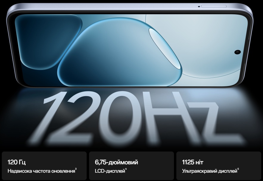 - Дисплей підтримує оновлення до 120 Гц. Частота оновлення може відрізнятися залежно від додатків і сценаріїв використання. Будь ласка, орієнтуйтеся на фактичне використання.