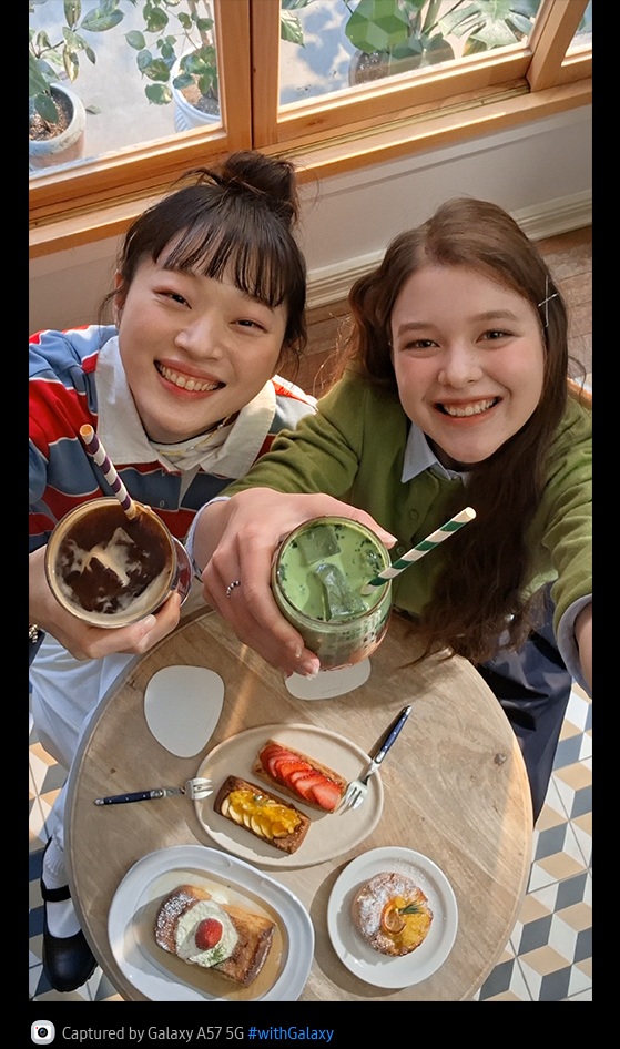 Завдяки функції Best Face на Galaxy A57 5G ви можете швидко та легко покращити групові фото. Просто виберіть групове анімоване фото, потім виділіть найвдаліші вирази та обличчя з кількох знімків, об’єднавши їх в одне приголомшливе фото, де всі посміхаються.