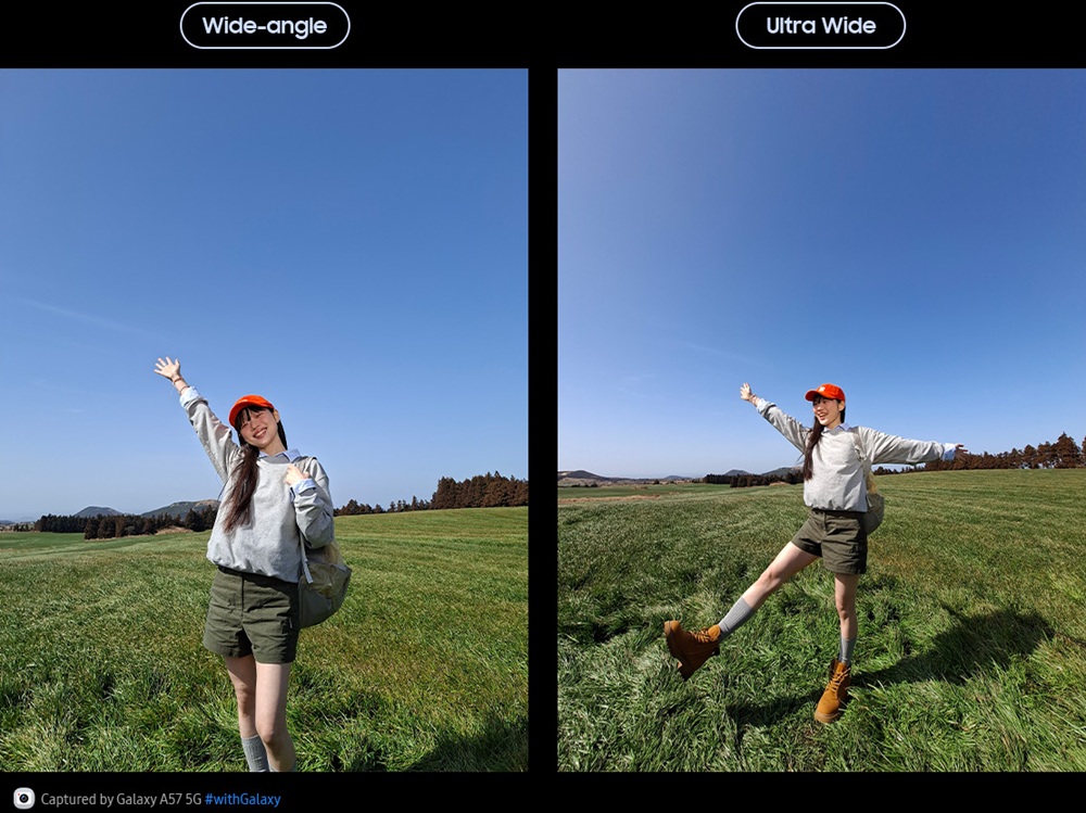 Знімайте портрети з покращеною деталізацією за допомогою Сегментації ШІ на Galaxy A57 5G. Система основної камери автоматично розпізнає фон, передній план і небо на портретних фото, а також автоматично покращує якість зображення шкіри, обличчя, волосся, трави тощо. Завдяки ультраширококутній камері Galaxy A57 5G ви можете захопити ширше поле зору та помістити більше світла в кадр.