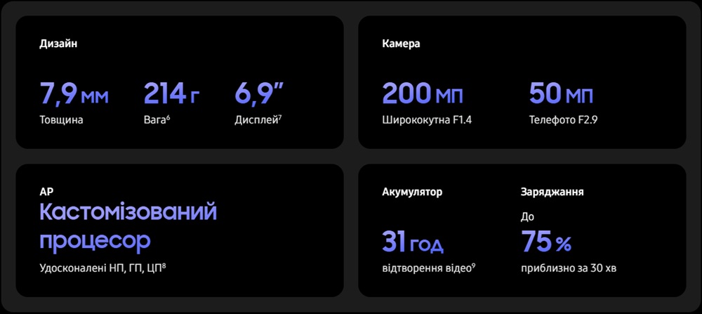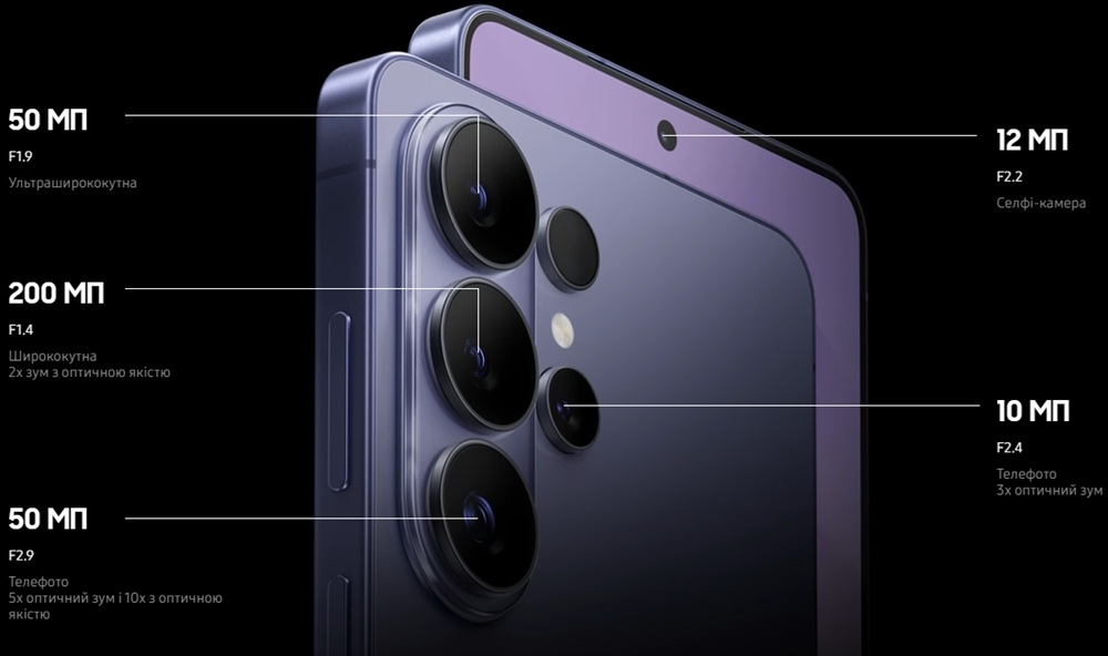 Ширші діафрагми забезпечують на 47% більше яскравості для ширококутної камери 200 МП, а система шамопоглинання дозволяє робити чіткі й деталізовані відео навіть в умовах слабкого освітлення.