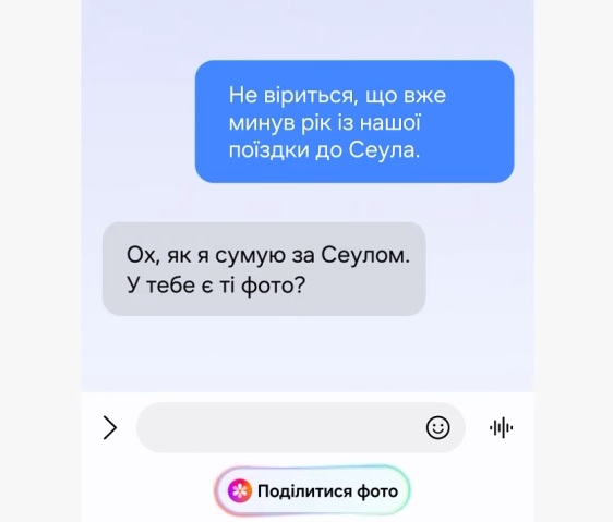 Нова функція Galaxy AI Now Nudge зчитує контекст на екрані та підказує корисні дії. Вона інтелектуально скорочує кількість кроків до наступної дії та навіть пропонує варіанти автозаповнення. Тепер знаходити та надсилати потрібні фото набагато легше. Якщо хтось попросить поділитися знімками з нещодавньої подорожі, Now Nudge зрозуміє, які саме фото вам потрібні, та знайде їх для вас. Потім ви побачите ці світлини у вашій Галереї, де зможете вибрати та надіслати їх у кілька дотиків.